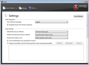 Silgi'nin en kullanışlı özelliği programlı silmedir - otomatik günlük veya haftalık temizlemeye sahip olmak harikadır. sabit sürücünüz. Gerçekten paranoyaksanız, Eraser silinen dosyaları 'makul inkar edilebilirliğe izin vermek' için seçtiğiniz dosyalarla değiştirir. Hiç kimsenin böyle bir özelliğe ihtiyaç duymayacağını umuyoruz, ancak bu, Silgi'nin silme konusunda ne kadar ciddi olduğunu gösterir!